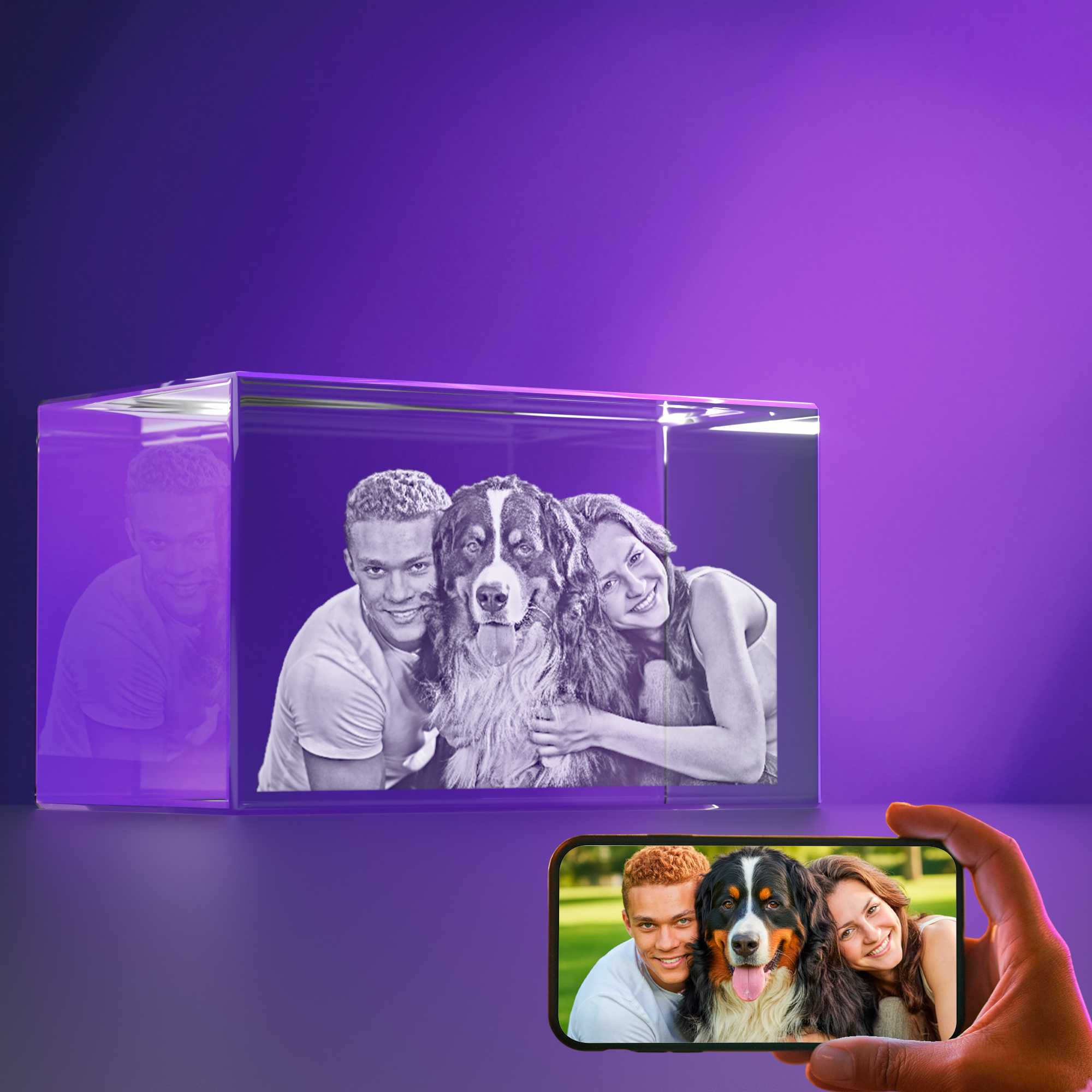 원하는 크기를 선택하세요. 아래 안내된 치수를 참고해 3D로 변환할 얼굴 수(인물·반려동물·대상)를 기준으로 선택하시면 됩니다.얼굴 수는 권장 사항일 뿐이며, 얼굴이 많을수록 크리스탈에 각인되는 이미지가 작아질 수 있습니다.